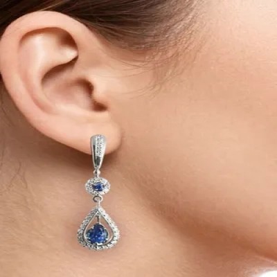 первая страница > Ювелирные изделия > G.st. ЮВЕЛИРНЫЙ ЗАВОД ЗОЛОТОЙ СТАНДАРТ Серьги из белого золота с натуральными сапфирами и бриллианта